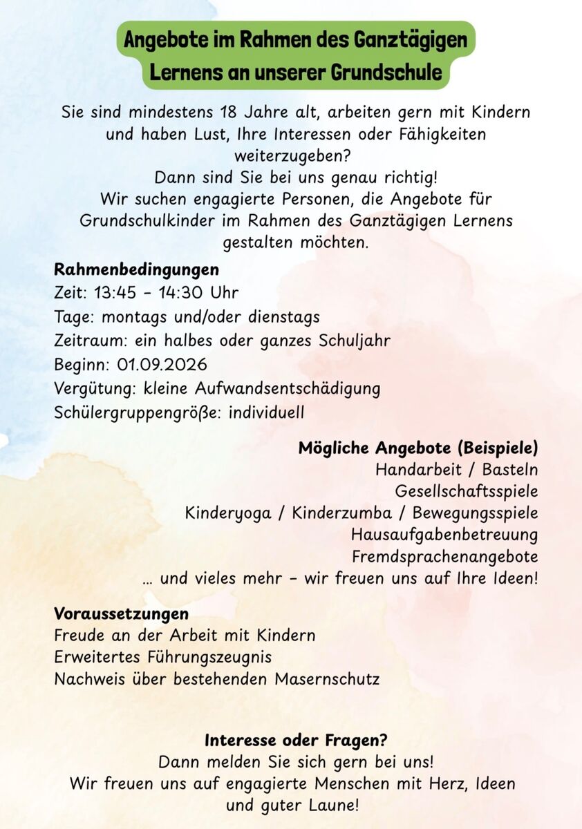 Ganztägiges Lernen in der Grundschule mitgestalten