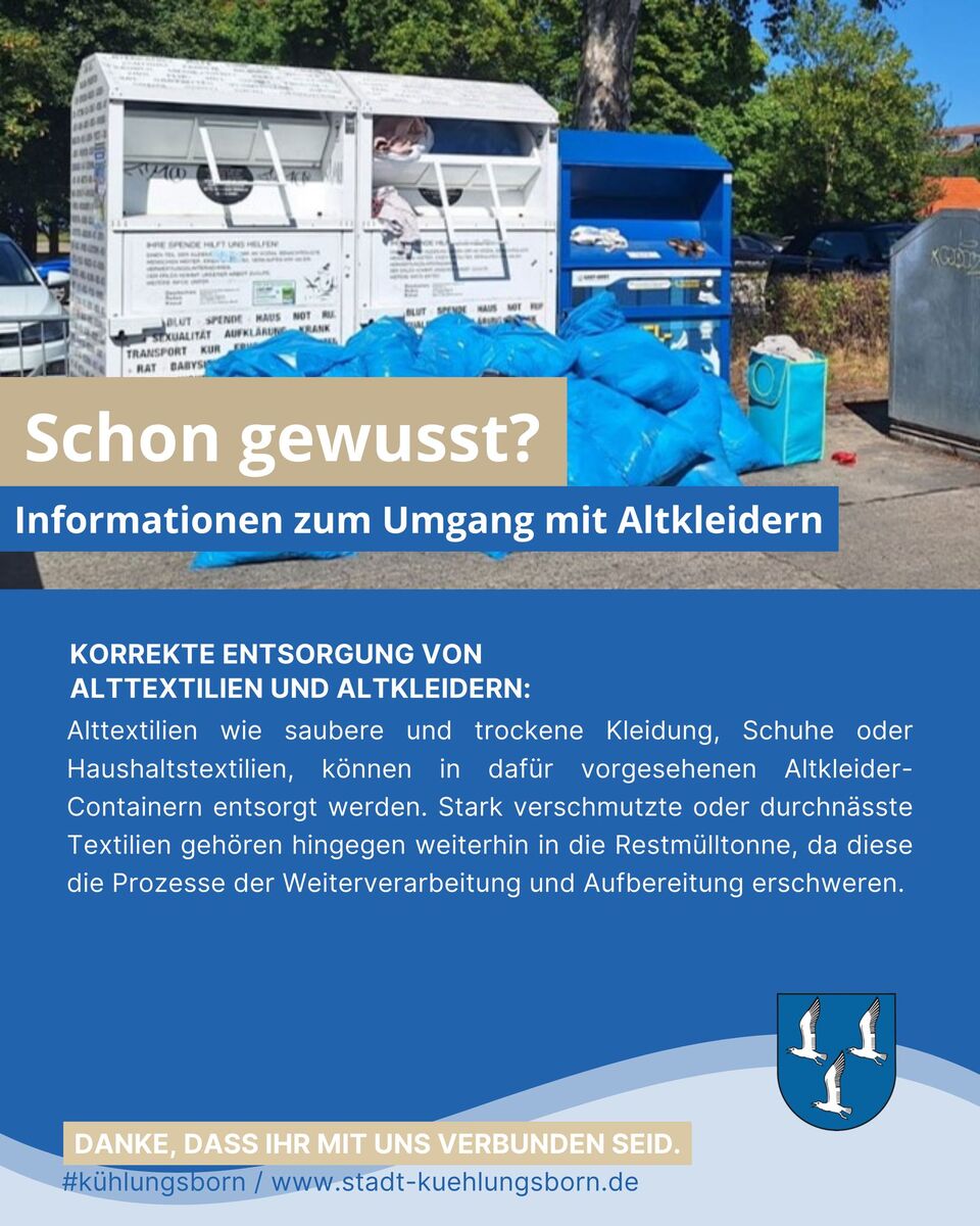 Weitere Informationen zur neuen EU-Richtlinie und zur Entsorgung von Alttextilien finden Sie hier: