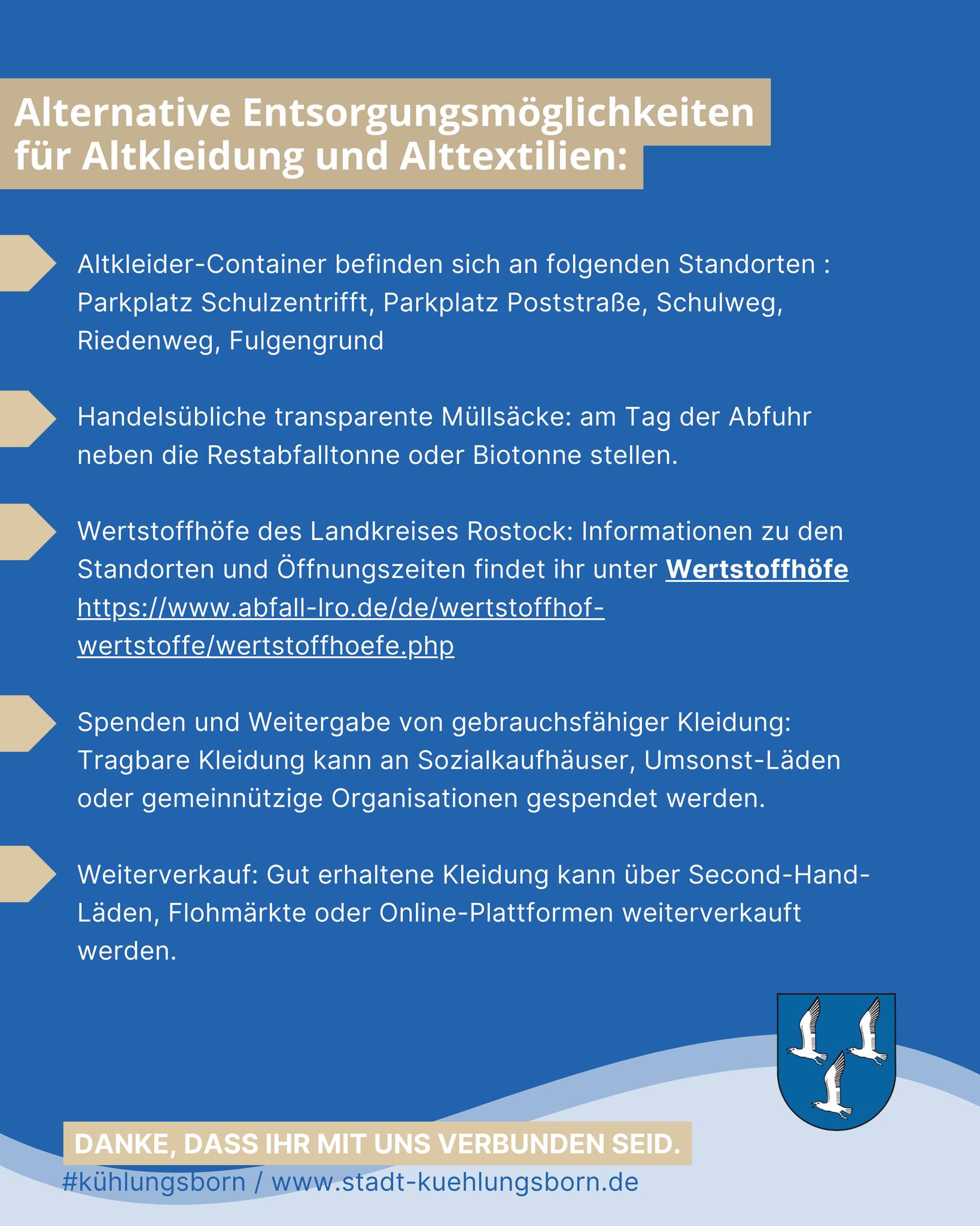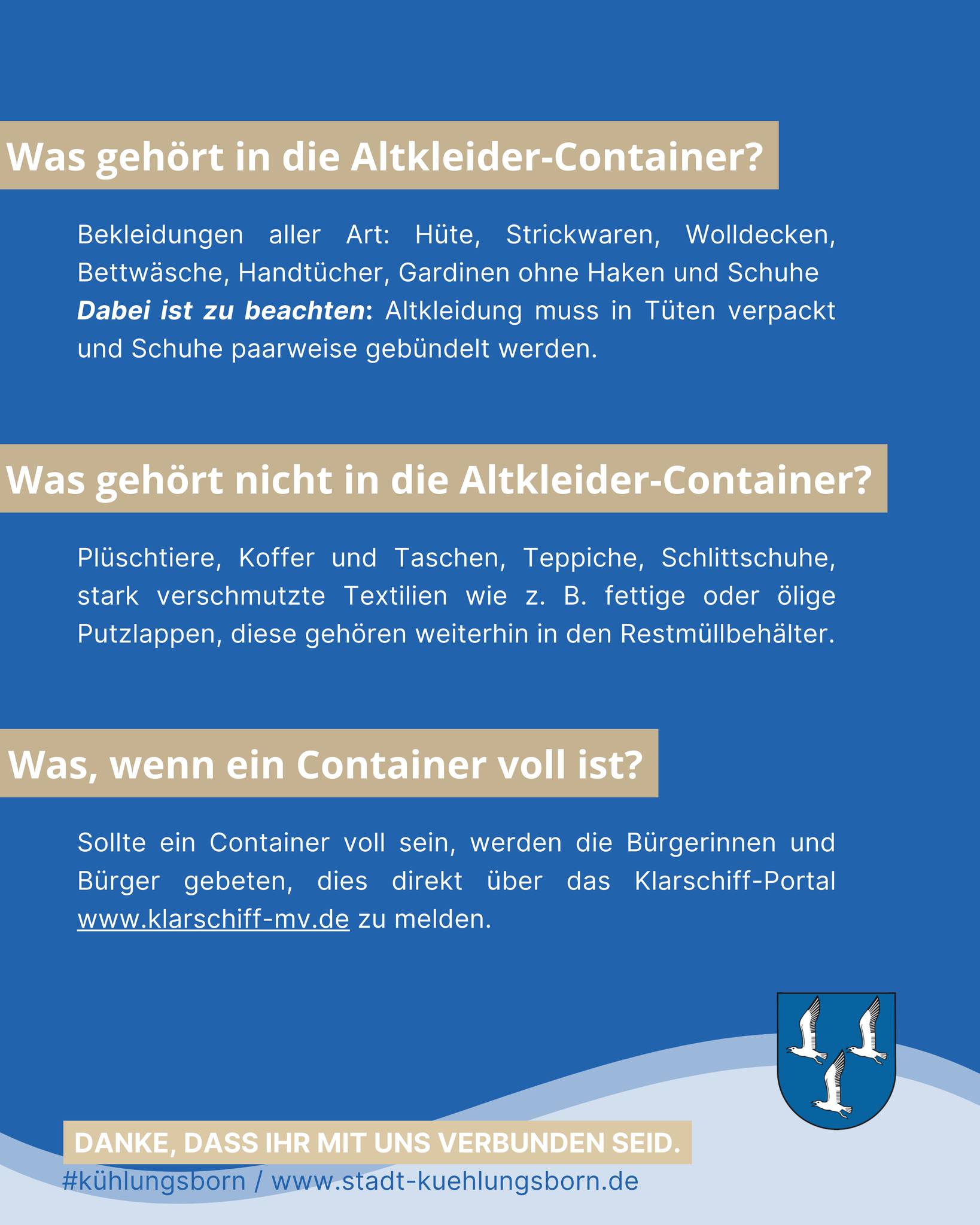 Zusätzlich wirken sich Marktveränderungen und logistische Umstellungen einzelner Sammeldienstleister auf die Verfügbarkeit und Leerungsfrequenz der Containerstandorte aus. Ziel dieser Regelung ist es, den Anteil von Textilien im Restmüll zu reduzieren und eine Wiederverwendung oder ein Recycling voranzubringen.