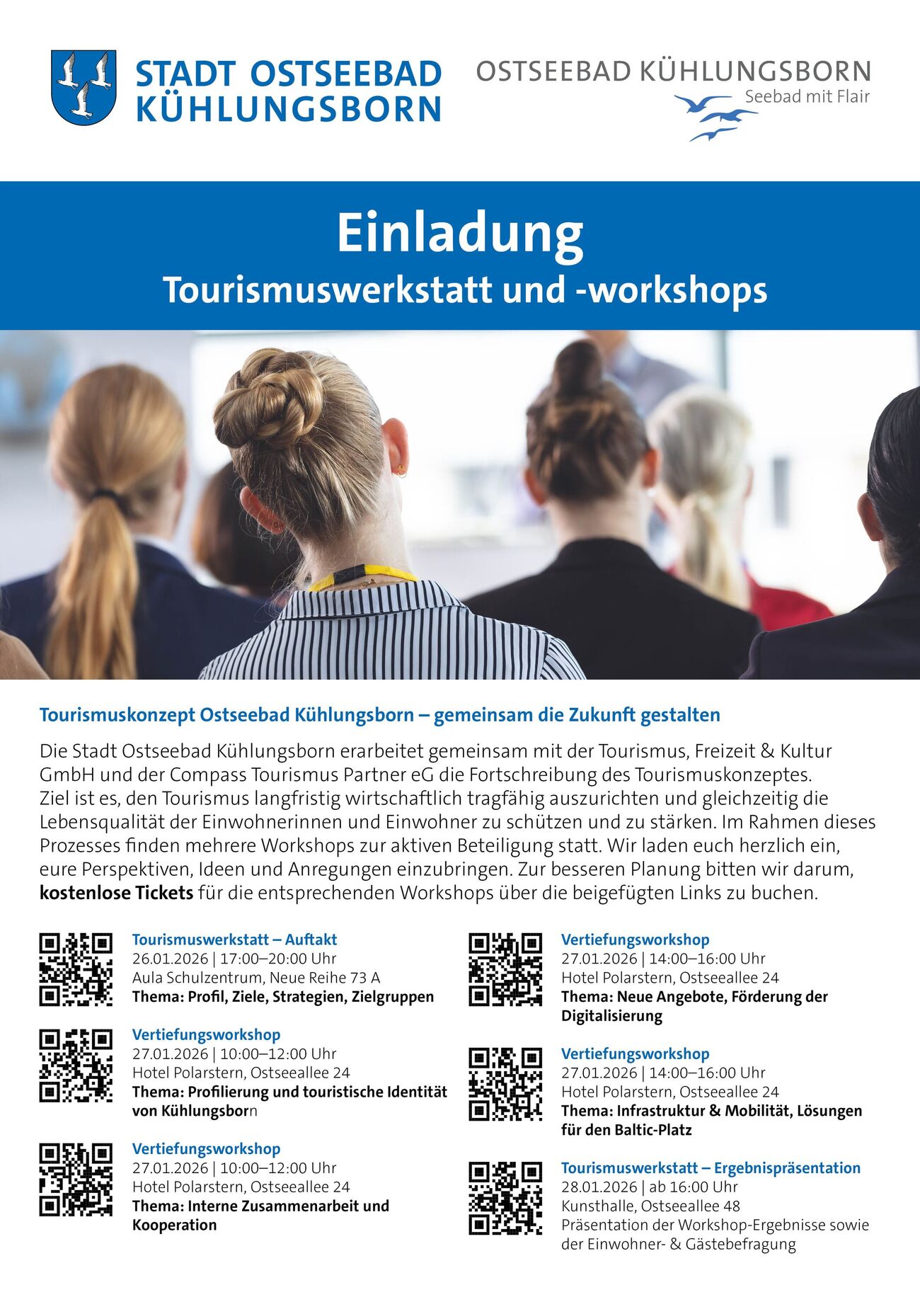 Ein zentrales Element dieses Prozesses ist Ihre Beteiligung. In mehreren Workshops haben Sie die Möglichkeit, Ihre Erfahrungen, Ideen und Anregungen aktiv einzubringen und die zukünftige Ausrichtung des Tourismus in Kühlungsborn mitzugestalten.