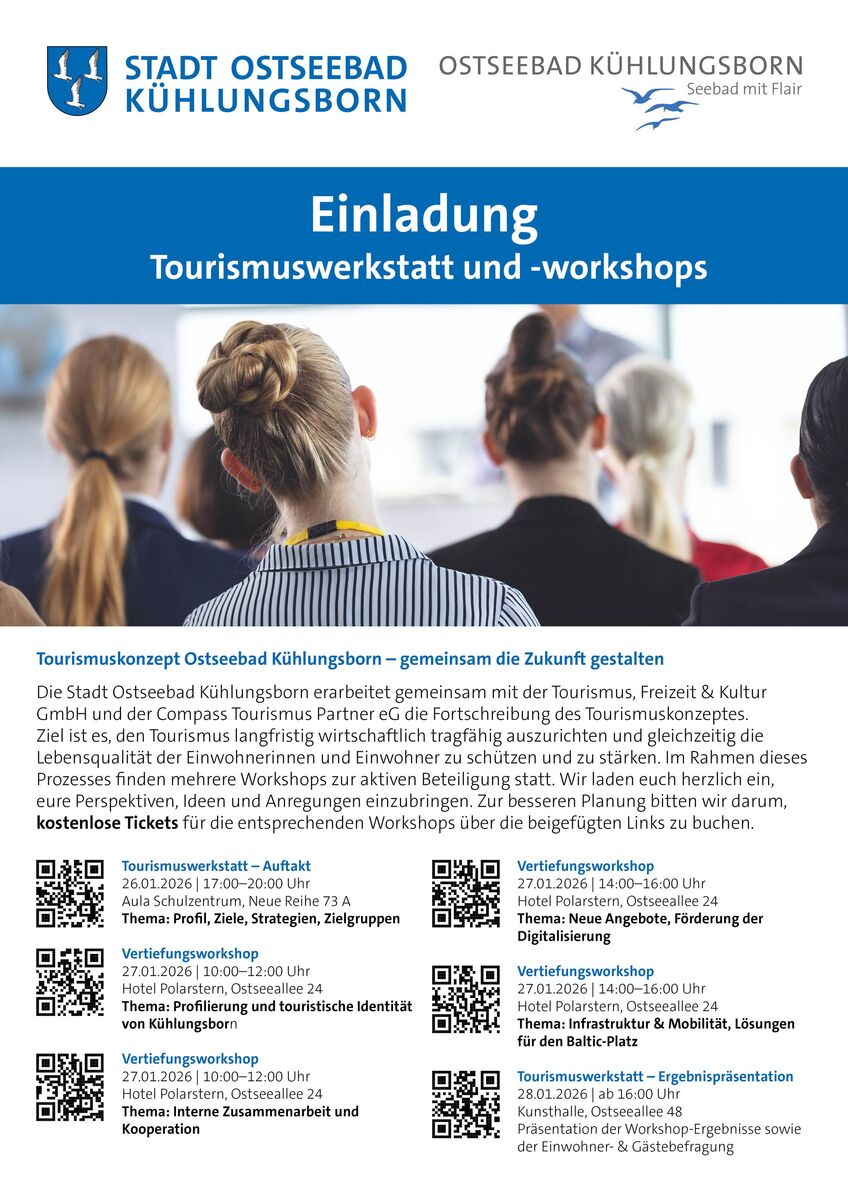 Nutzen Sie die Gelegenheit, Ihre Perspektive einzubringen und aktiv an der Weiterentwicklung des Tourismus in Kühlungsborn mitzuwirken. Ihre Meinung zählt – für ein lebenswertes Ostseebad heute und in Zukunft.